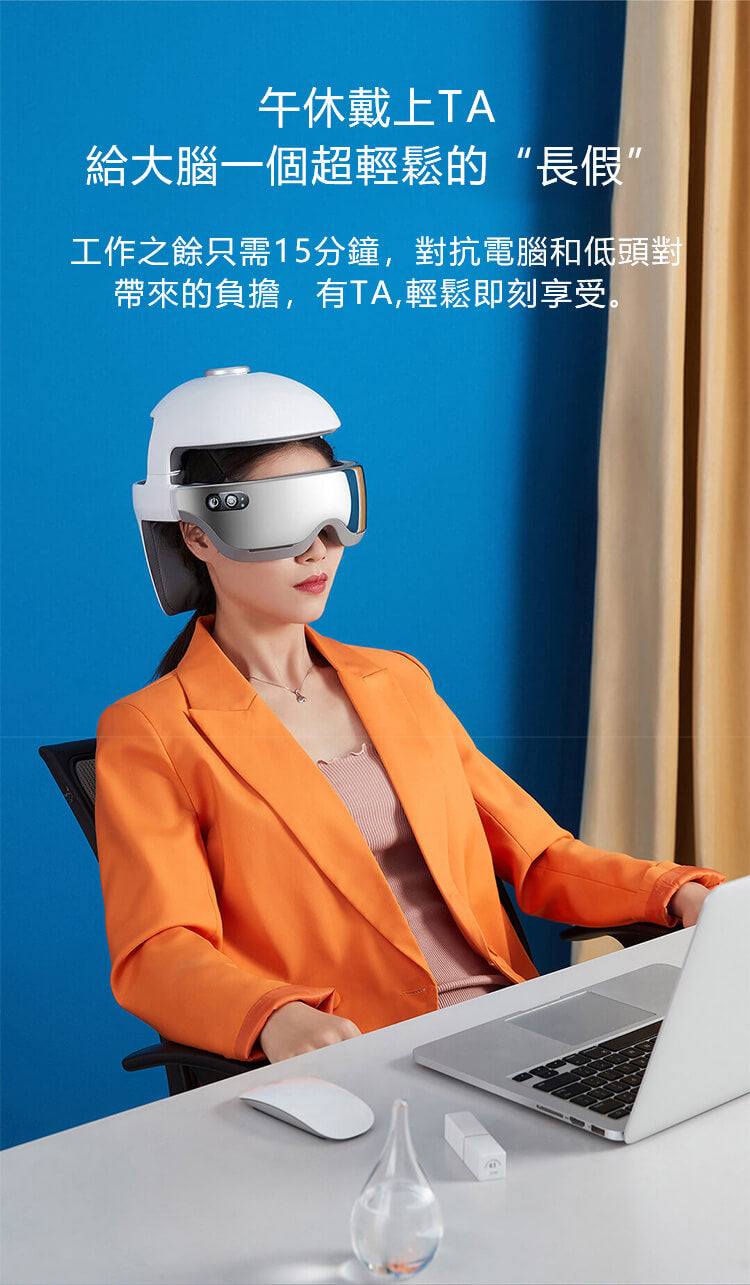 - 多功能—這是一個3D氣囊環抱頭、頸、眼,同時享受多個部位的按摩,沉浸式體驗,放空神器。