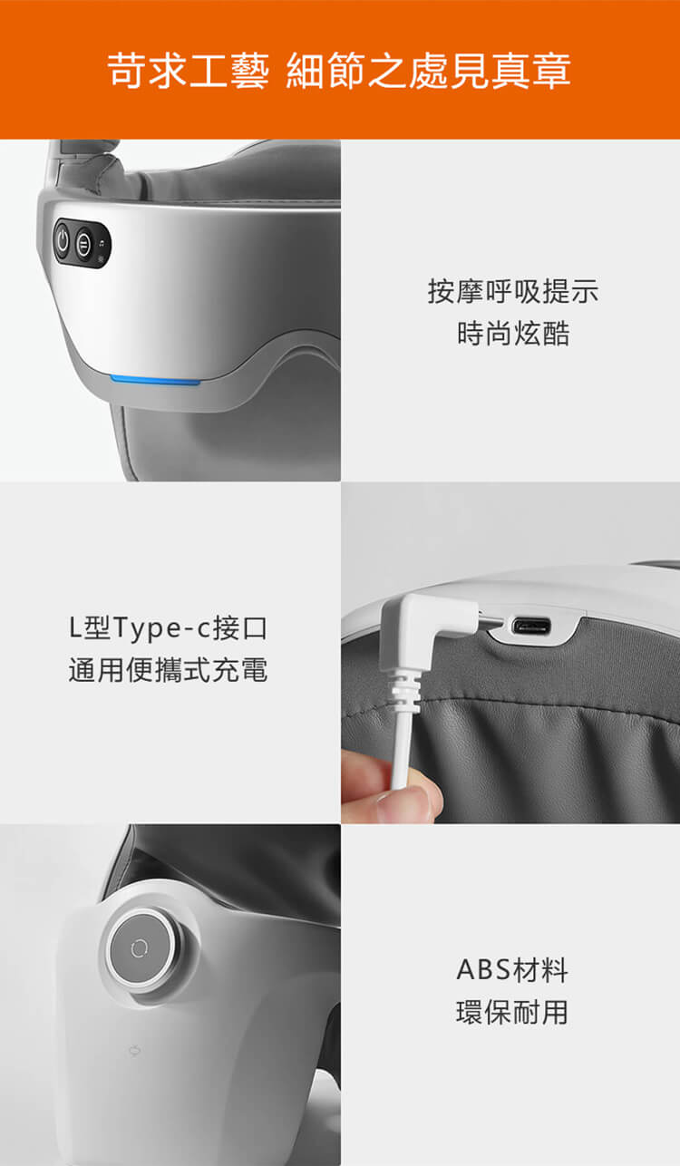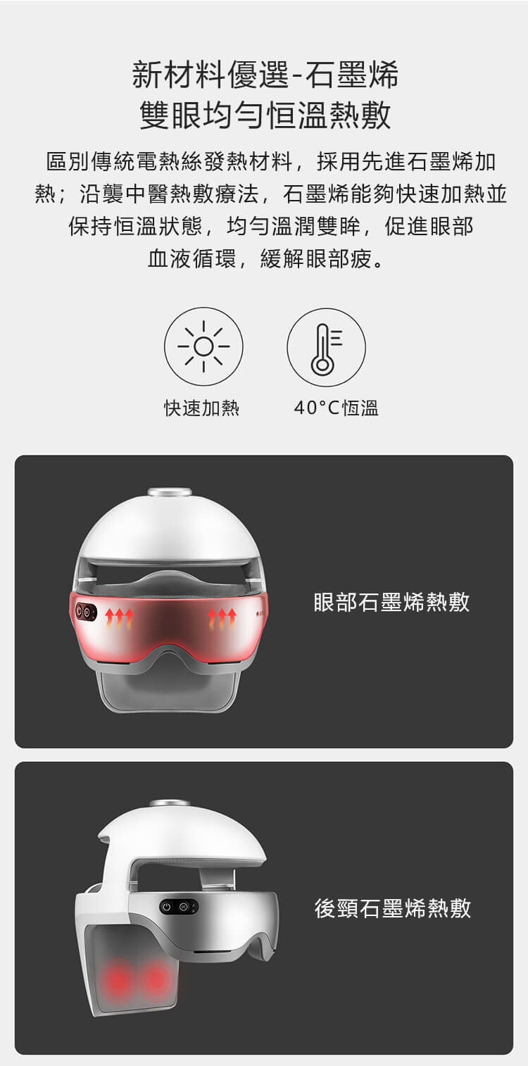 - 按摩熱敷—SPA級的雙眼按摩,石墨烯雙眼均勻恆溫加,緩解眼部疲勞
