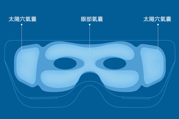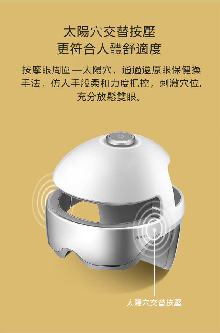 按摩眼周圍—太陽穴,通過還原眼保健操手法,仿人手般柔和力度把控,刺激穴位,充分放鬆雙眼。