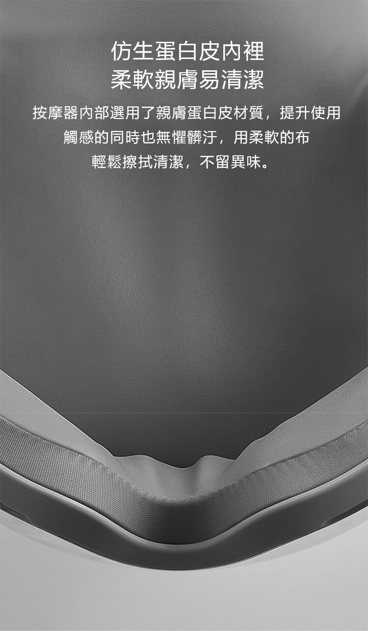 按摩器內部選用了親膚蛋白皮材質,提升使用觸感的同時也無懼髒汙,用柔軟的布輕鬆擦拭清潔,不留異味。