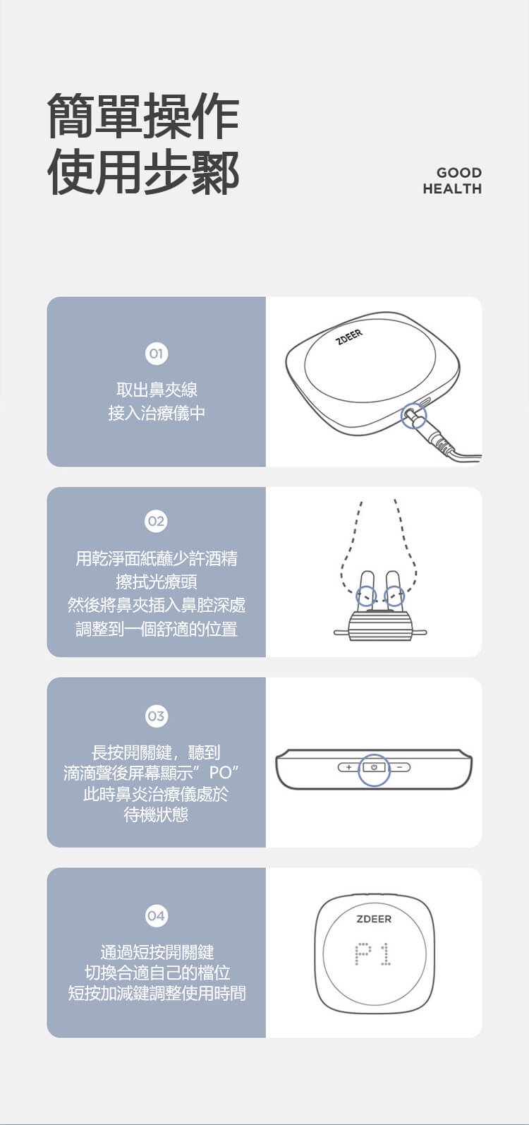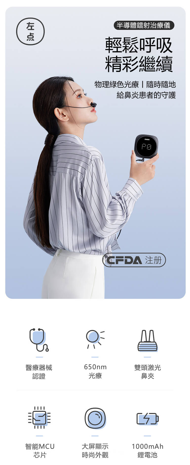 - 雙頭激光鼻夾—可拆卸激光頭,清潔更徹底;雙管齊下,鼻炎不等待