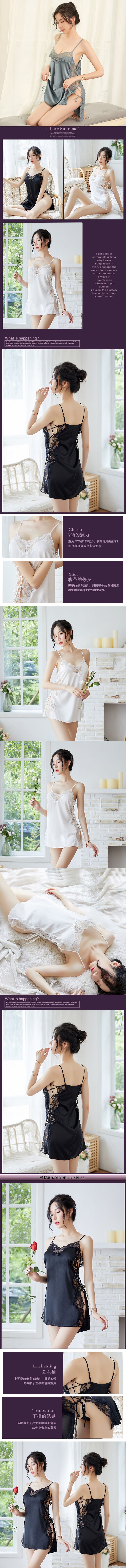 韓版可愛少女蕾絲拼接性感吊帶睡衣
