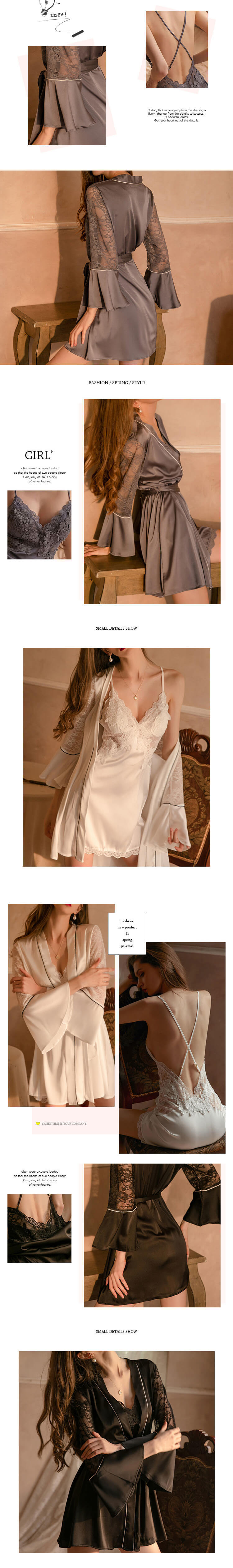 高级蕾丝花边性感冰丝睡裙,如裸睡般舒適!