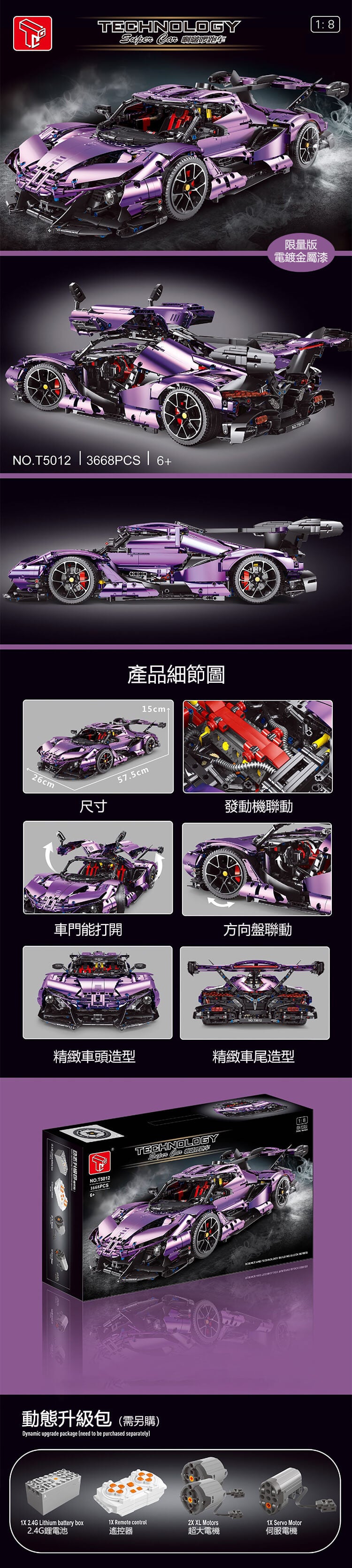 這是一款TGL阿波羅電鍍限量版跑車,採用了紫色電鍍金屬漆工藝的外觀件,質感非常棒!