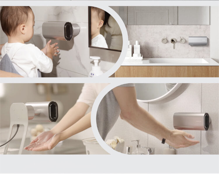 非常適合您的廁所、廚房、浴室等地方,並且足夠小,可以在任何需要的地方安裝在牆上或者使用支架。提供非接觸式衛生乾燥方法,僅需 13 秒快速烘乾,不僅環保,而且還可以為您節省金錢。