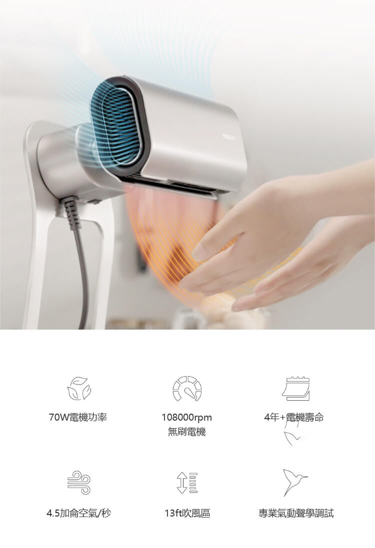 • 極速烘乾—高速氣流,13秒快速烘乾,無需長時間等待