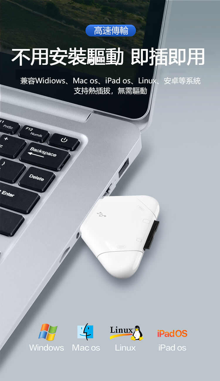兼容Widiows、Mac os、iPad os、Linux、安卓等系統 支持熱插拔,無需驅動