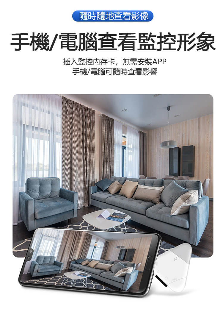 插入監控內存卡,無需安裝APP,手機/電腦可隨時查看影響