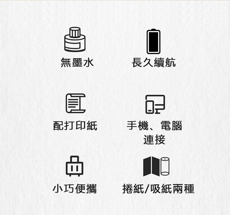 - 打印技術—熱敏無墨打印技術,無碳帶耗材 ,打印效果清晰同時安全無害