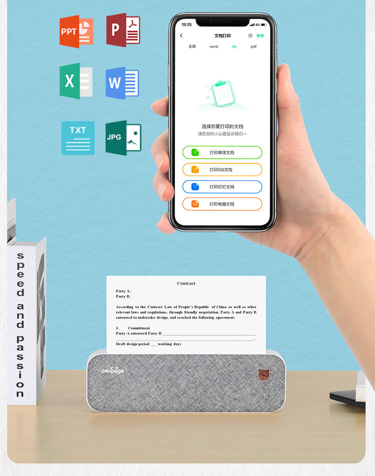 - 低碳環保—這是一款無線便攜式高清打印機,3秒快速打印;0墨盒、0碳帶、0碳粉、0墨水