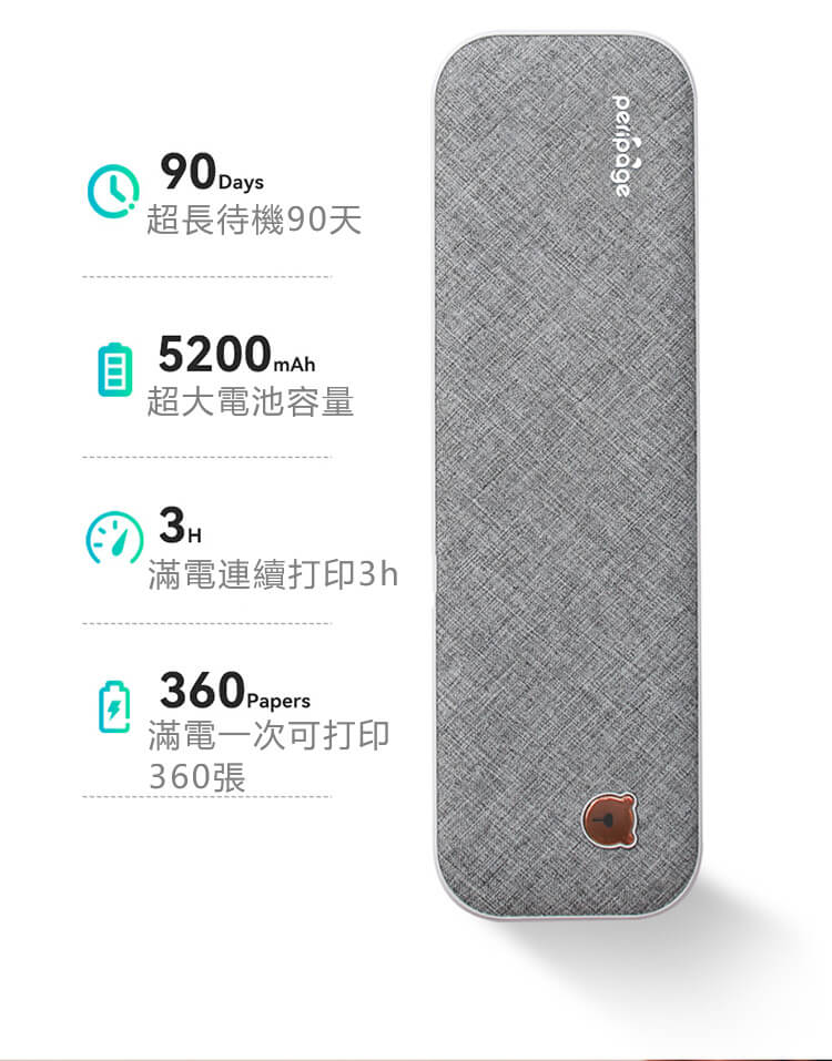 - 長久續航—2600mah超大電池容量,90天超長待機,3h/360頁紙連續打印