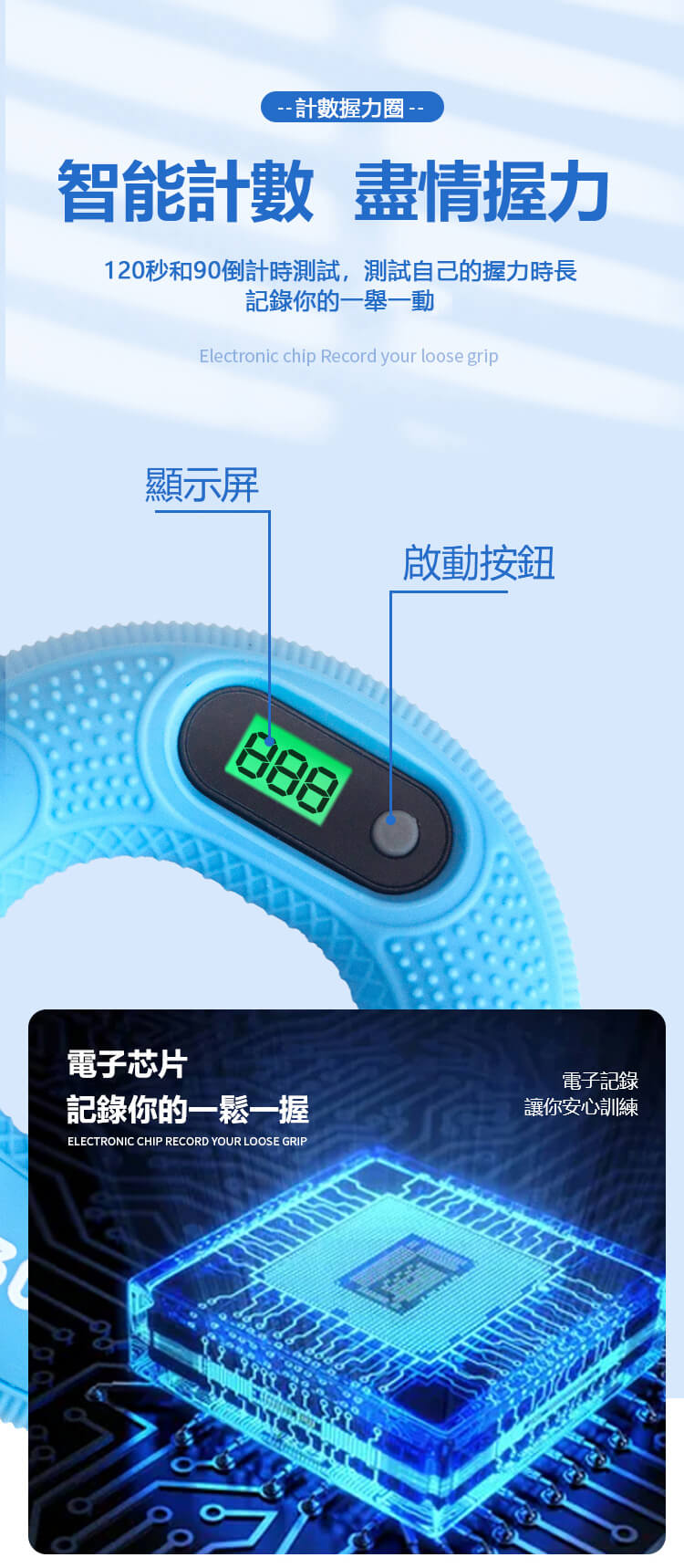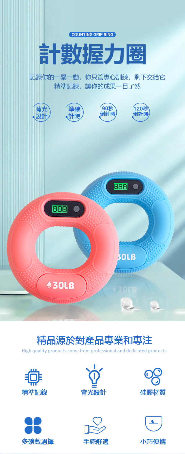 - 握力圈—這是一個智能計數硅膠握力圈 , 防水防滑,舒適手感