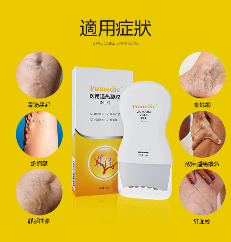 腿部血絲明顯、蚯蚓血管凸起、腿部腫脹不堪、膝蓋扭傷、腿部色素不均、逐步慢性潰瘍使用用Pumaidi靜脈曲張醫用冷敷凝膠都能得到改善和輔助治療!