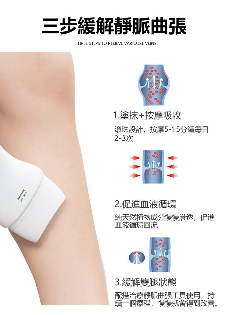 塗抹+按摩二合一使用,不僅輕鬆緩解靜脈曲張,平時也可以緩解腿部疲勞和酸麻腫痛!