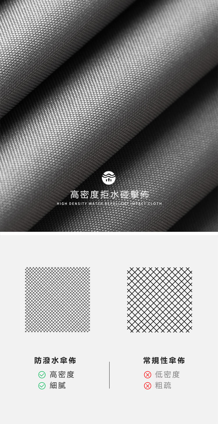 - 強拒水—高密度拒水碰擊布,細膩防潑水,雨天出行不濕身