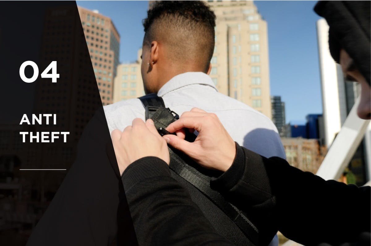 單肩包“Atom X Sling”非常適合預防犯罪。