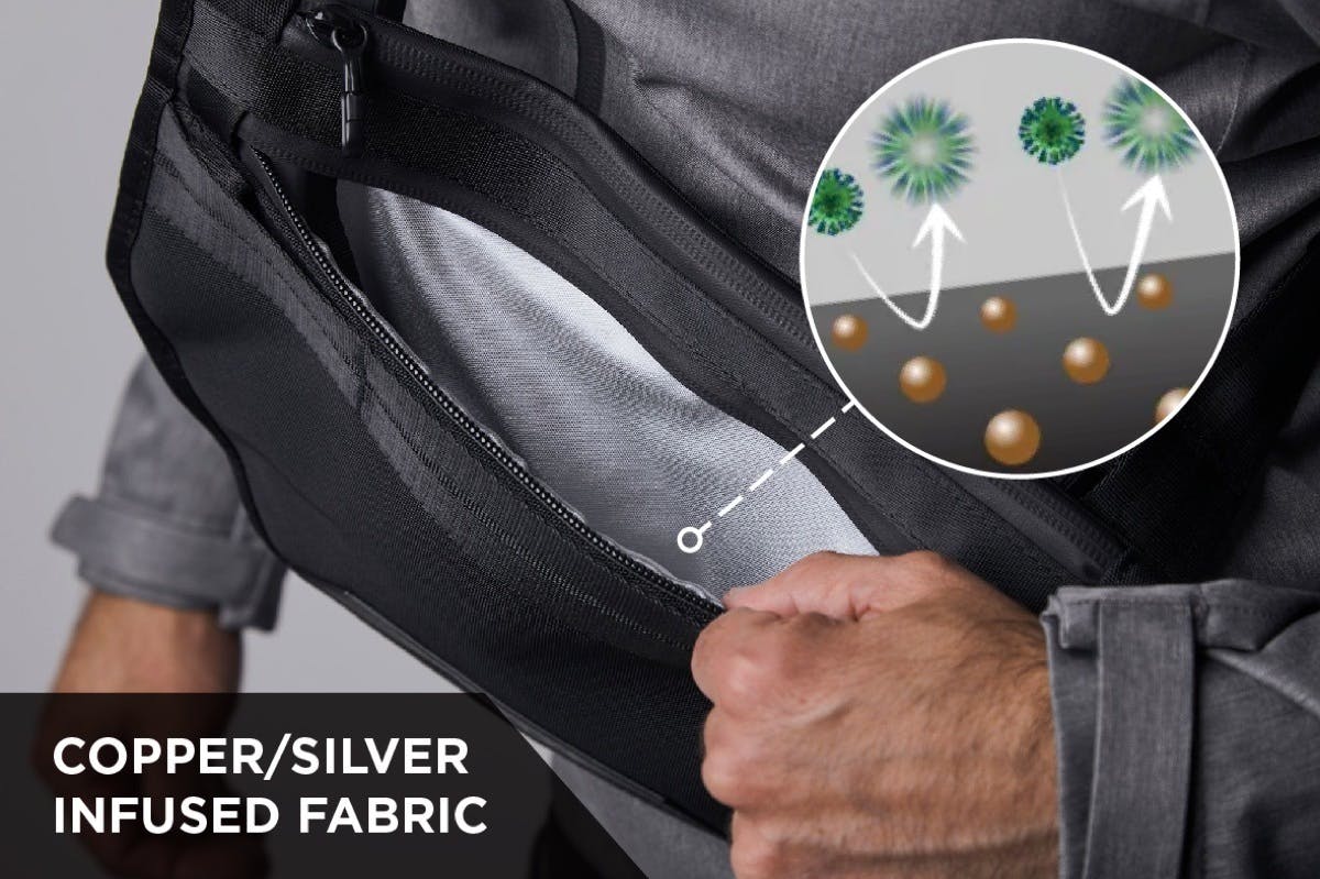前袋內的織物嵌入了銅和銀納米粒子,可在接觸時破壞細菌。銅離子提供對細菌和某些病毒的保護。