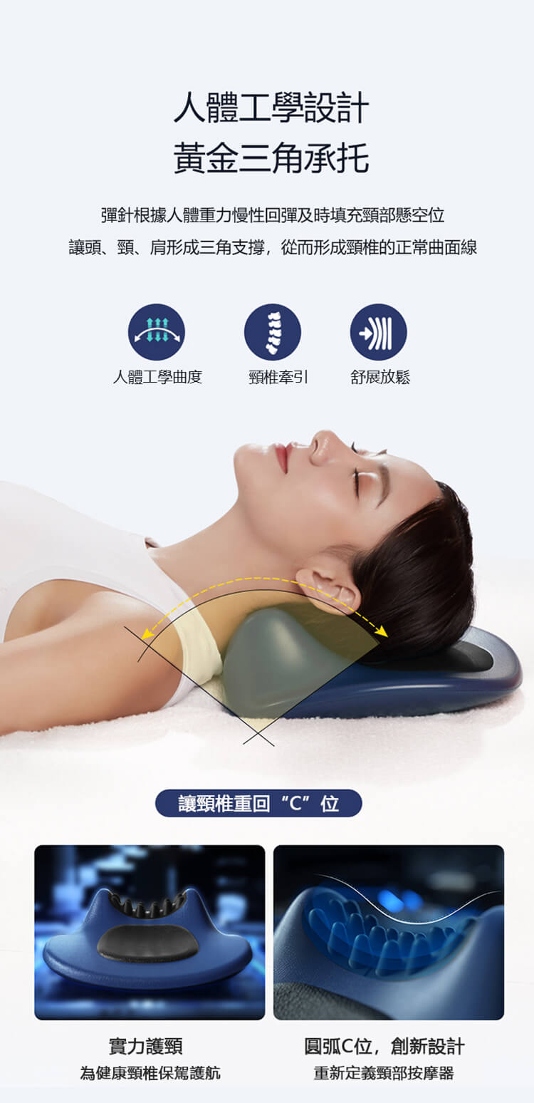 智能頸椎彈針牽引按摩枕丨EMS彈針能量灸儀丨拍打、揉捏、指壓、推拿、叩擊、牽引