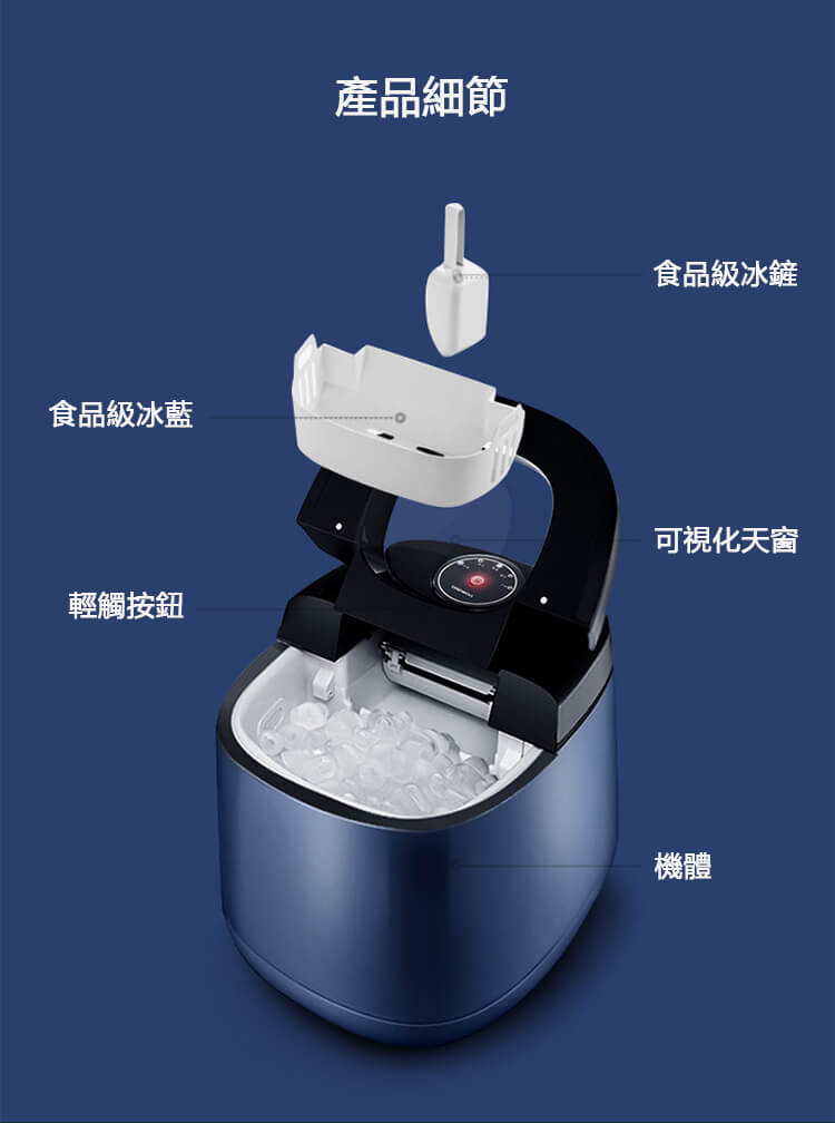 - 迅速出冰—一鍵啟動,直至滿冰,6分鐘快速製出歐美子彈冰