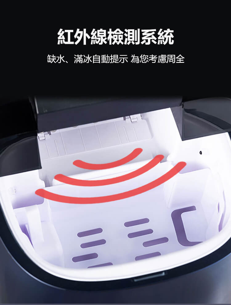 - 智能提示—紅外檢測系統,缺水、滿冰自動提示,很貼心設計