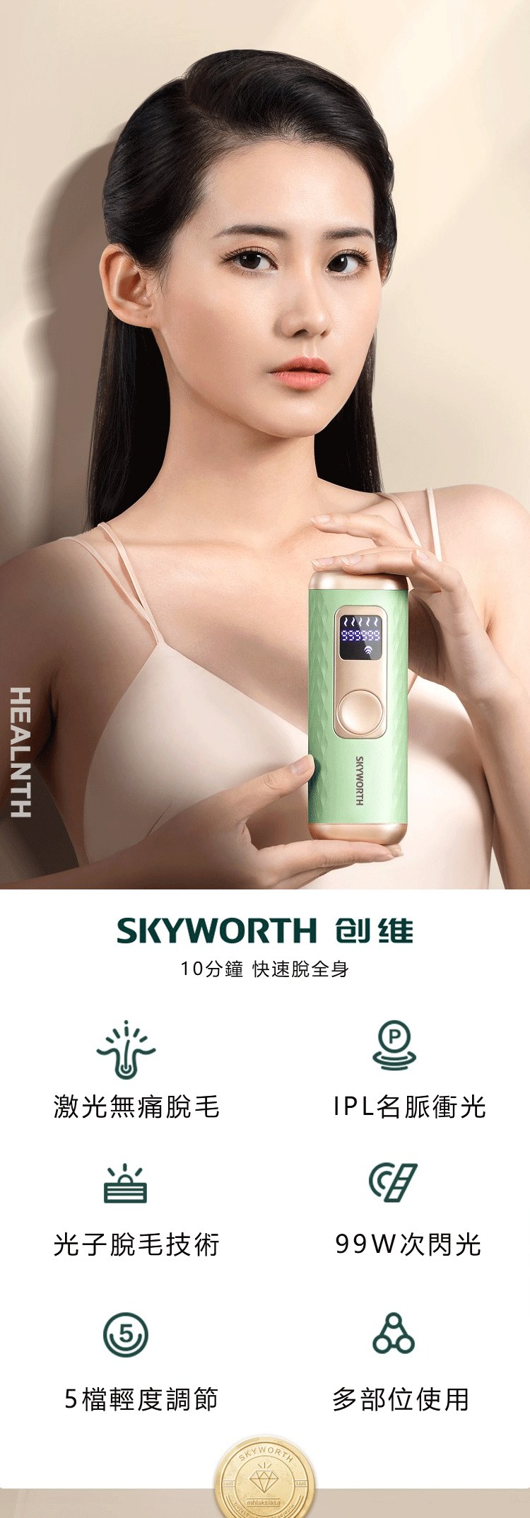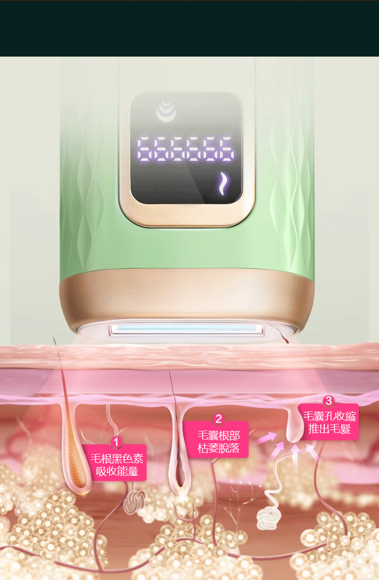 - 作用—安全持久脫毛、白嫩肌膚、淡化黑素