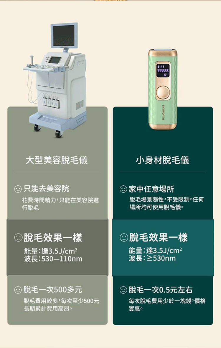 skyworth冰點脫毛儀採用醫美級石英燈管,高能量光波直達毛囊