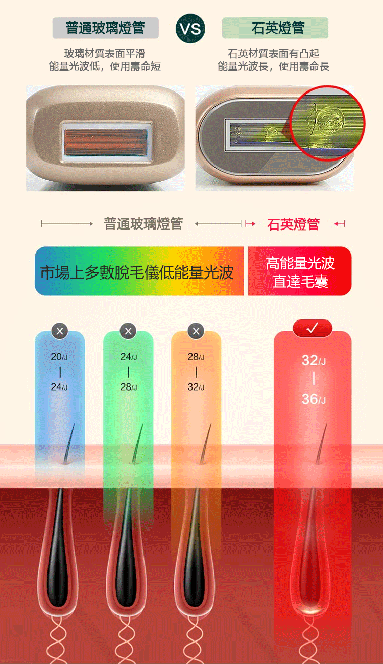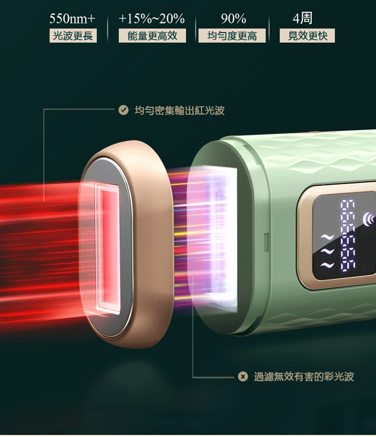 黑科技紅波能系統,脫毛更快一步