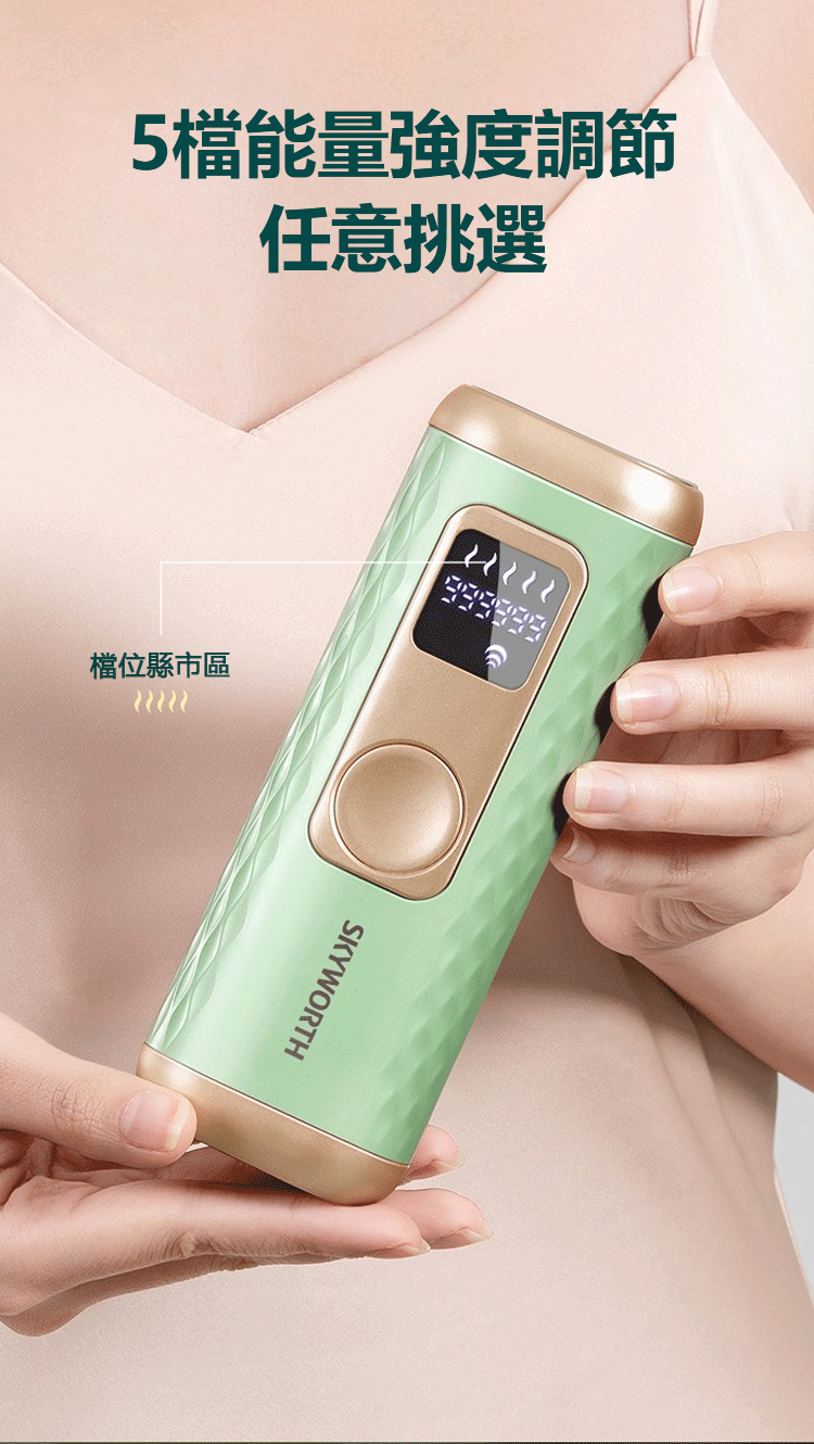 - 5擋輕度調節—選擇合適自己的檔位,更好的體驗脫毛樂趣