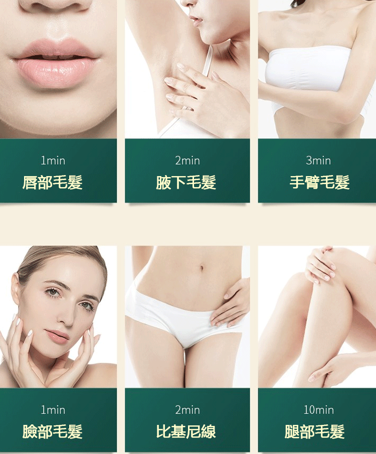 包扣唇部、腋下、手臂、比基尼線、腿部、臉部都可以使用